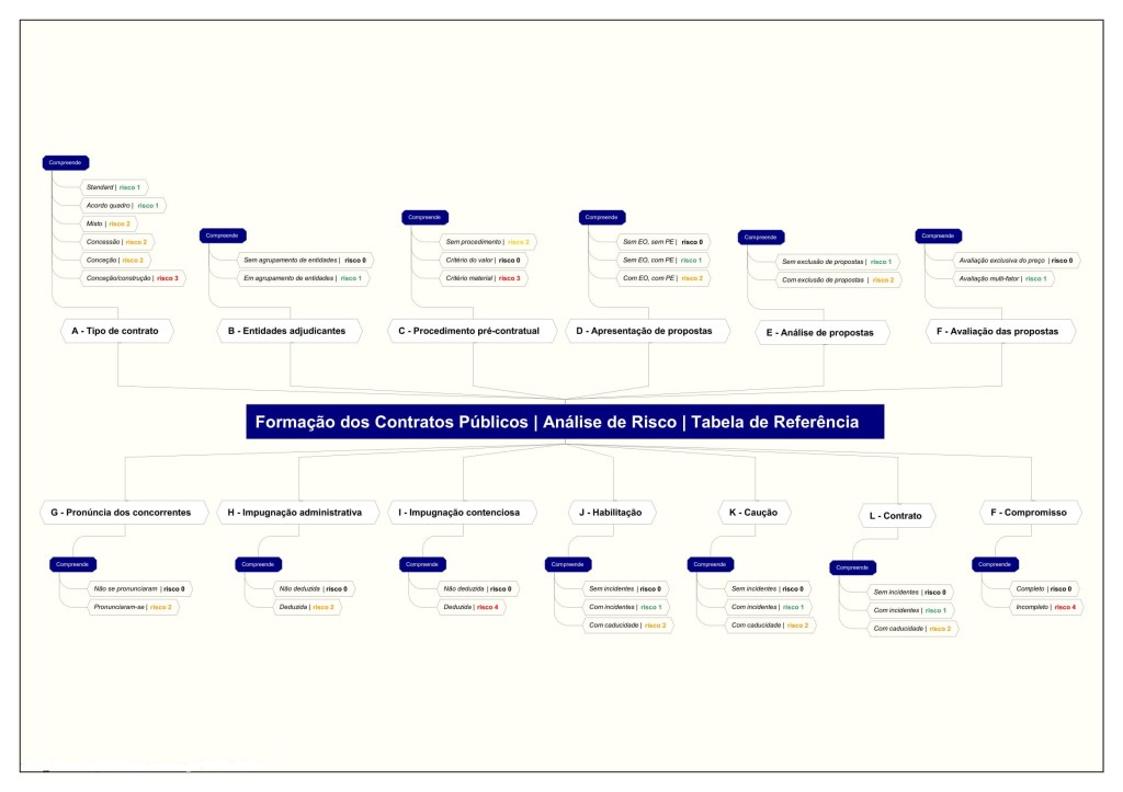 Desenvolvemos uma metodologia que procura, de uma forma dinâmica e progressiva, identificar, avaliar e mensurar os riscos inerentes ao procedimento de formação dos contratos públicos. Esta avaliação assumirá, parece-nos, especial relevância quando os contratos possam ou devam merecer apreciações jurisdicionais ou de outras instâncias de controlo, designadamente pelo Tribunal de Contas ou por autoridades responsáveis pela gestão de financiamentos públicos.