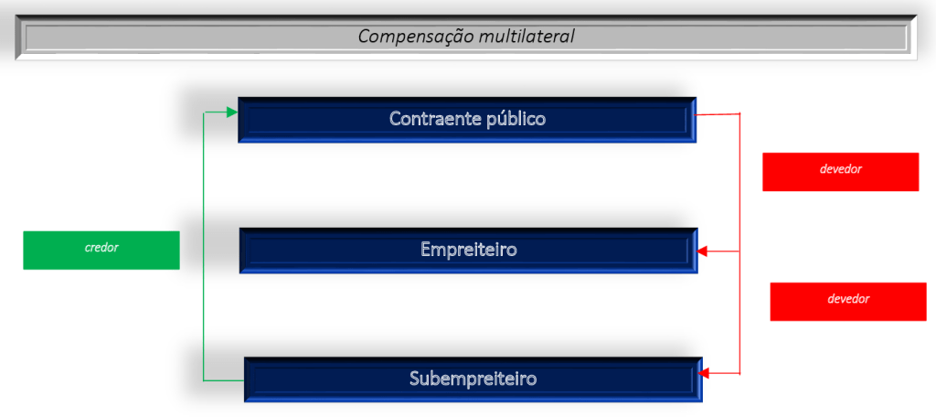 Assim e por exemplo, se o contraente público dever € 1.500 a um seu fornecedor, sendo que esse fornecedor deve a um seu subcontratado precisamente esse montante de € 1.500, sendo esse subcontratado, simultaneamente fornecedor do contraente público, encontrando-se em dívida para com ele em igual montante de € 1.500, podem estes créditos em rede ser multilateralmente compensados, saldando-se todas as dívidas.