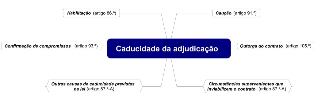 A entidade adjudicante pode declarar a caducidade da adjudicação em fase de habilitação do adjudicatário (artigo 86.º do Código dos Contratos Públicos), aquando da prestação da caução (artigo 91.º), no momento da confirmação de compromissos (artigo 93.º), no momento da outorga do contrato (artigo 105.º) e quando se verificar a ocorrência superveniente de circunstâncias que inviabilizem a celebração do contrato (artigo 87.º-A).