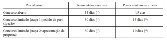 1. Em casos urgentes, os adquirentes públicos podem reduzir substancialmente os prazos para acelerar concursos abertos ou limitados.