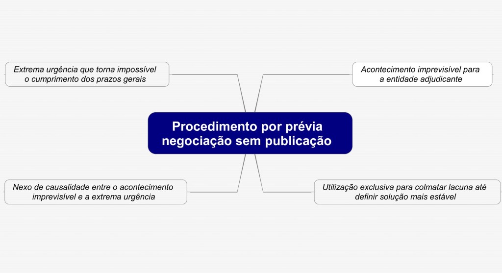 2. Se a redução dos prazos não for suficiente face à peremptoriedade da necessidade a suprir, a entidade adjudicante pode enveredar pelo procedimento por negociação, sem a existência dos normais requisitos de publicação, observância de prazos mínimos, número mínimo de entidades a consultar ou outros requisitos processuais.