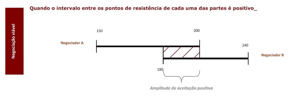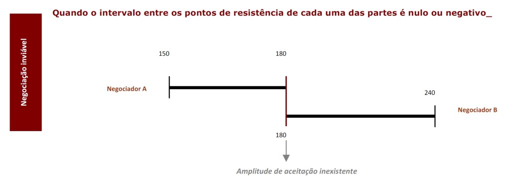 Quando a amplitude negocial é nula ou negativa, designadamente por coincidirem os pontos de resistência das partes em negociação, não será possível alcançar um acordo negociado, salvo se as partes, ou alguma delas, alterarem os seus pontos de resistência.
