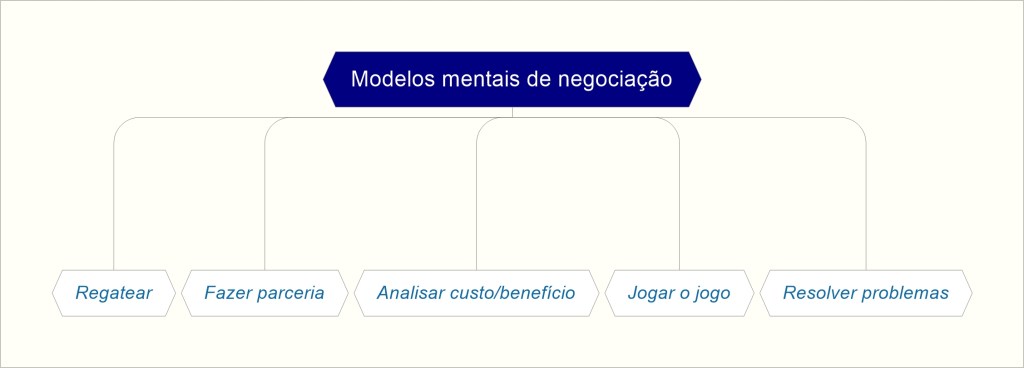 São comumente apresentados diversos modelos mentais de negociação: