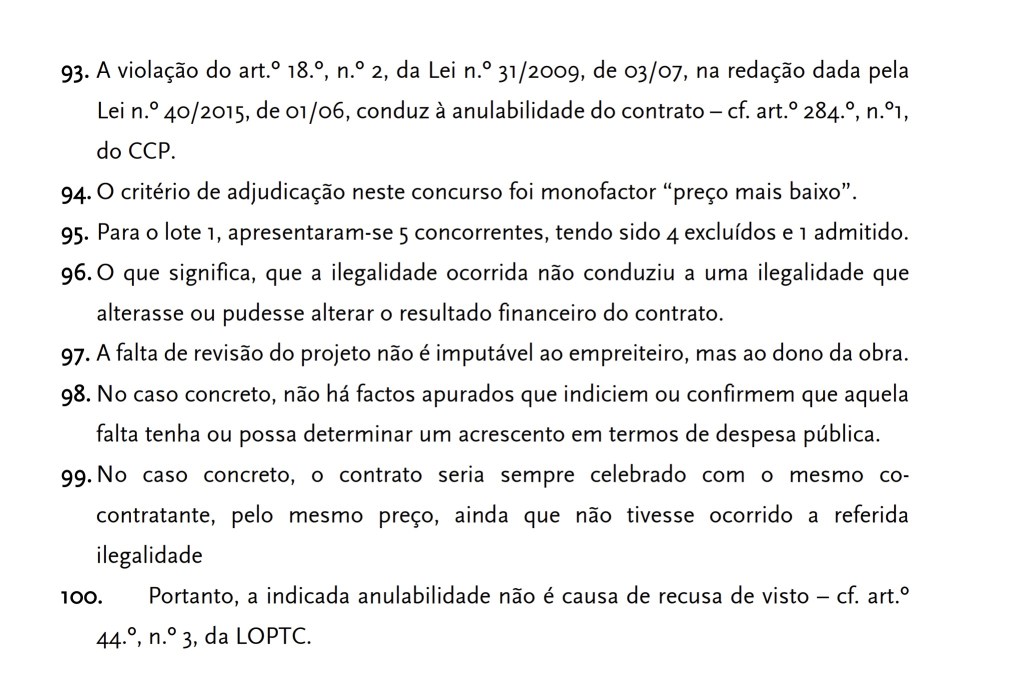 O Tribunal de Contas sentencia, assim, que a violação do artigo 18.º, n.º 2, da Lei n.º 31/2009, de 3 de julho, na redação atual, conduz à anulabilidade do contrato, por aplicação do artigo 284.º, n.º 1, do Código dos Contratos Públicos.