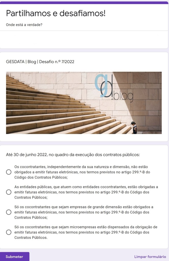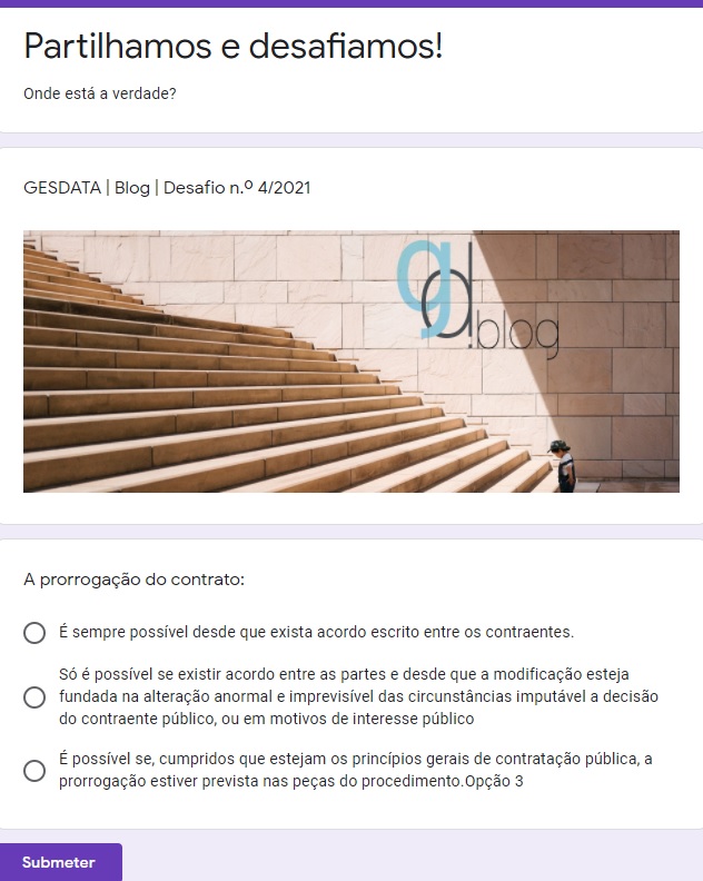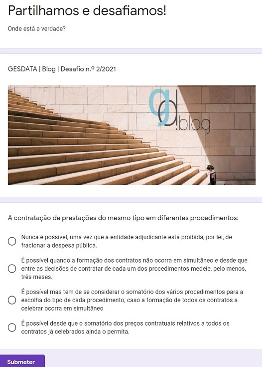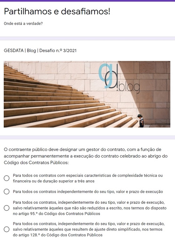 Os Desafios Blog.gesdata pretendem estimular todos os que se interessam pelas temáticas da contratação pública a ponderar alternativas, detetar pormenores, sinalizar especificidades e, assim, avaliar o impacto transversal das soluções legais.